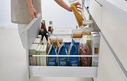 熱や傷に強く、プロの厨房のようなキッチンをご自宅に再現します。デザイン性機能性も高く人気のキッチンです。